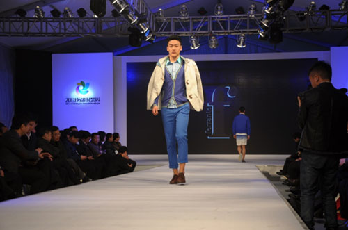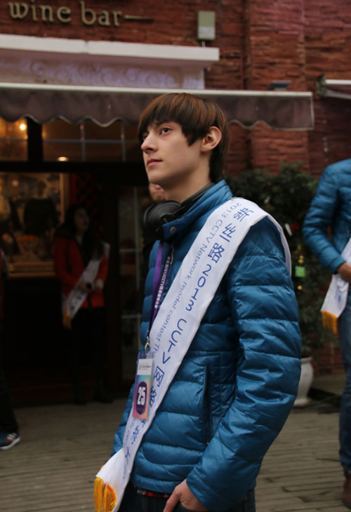 图:新丝路2013CCTV网络模特大赛参赛男模身着雷迪波尔服饰