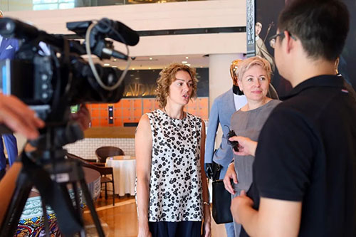 图为雷迪波尔国际客户和雷迪波尔国际事务部副总监接受媒体采访。