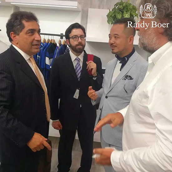 今天,意大利对外贸易协会(ICE)市场部主任赖世平先生(Antonino Laspina)亲临雷迪波尔在Pitti Uomo的展位,他对雷迪波尔多年来对中意时尚交流所做出的贡献表示赞赏,对未来中意两国企业的合作充满信心。赖世平先生曾担任意大利对外贸易协会中国区主任多年,在任职中国期间,始终关心雷迪波尔企业的成长,多次参加雷迪波尔的各项重大活动,是雷迪波尔的老朋友。