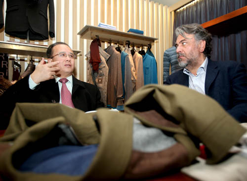 1月的亚平宁半岛,寒风习习,一如欧洲的经济现状。而佛罗伦萨的时尚盛宴,似乎并没有受到影响,本届的“意大利佛罗伦萨国际男装展”(PITTI IMMAGINE UOMO)依旧聚集了众多全球最顶尖的男装品牌,展会现场的旺盛人气,也给冬日的欧洲带来了些许暖意。今年PITTI IMMAGINE UOMO组委会更诚意邀请了中国驻意大利大使丁伟先生前来参观,可见在全球经济立体化和不景气的现在,世界对中国的需要,意大利时尚界对来自中国的男装的重视程度。PITTI组委会外联部负责人Sibilla Delle Gherardesca女士向丁伟大使详细介绍了PITTI展的历史及发展现状,并陪同丁伟大使参观了重点展区。